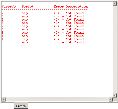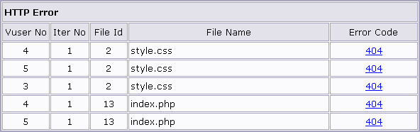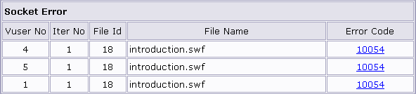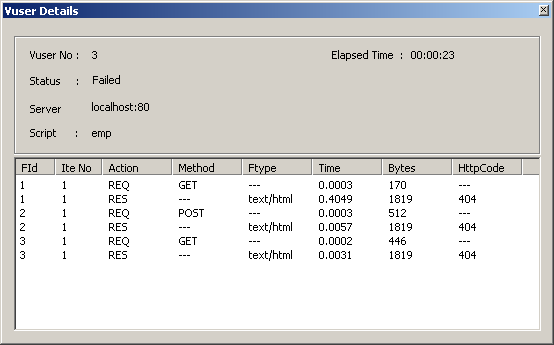 Receive timeout error, and HTTP error information that occurs during simulation process. It provides following information's vuser no, iteration no, file id, file name and