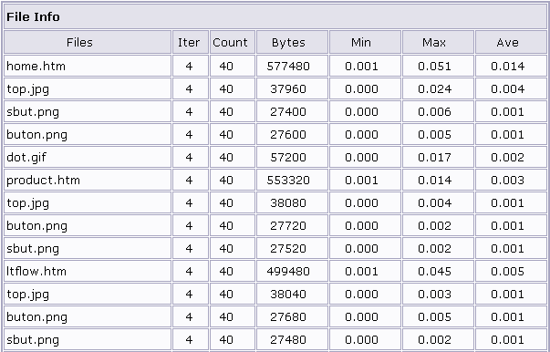 Text Files/Sec graph shows the number of text files (htm, asp, aspx, jsp, css, js, vbs, php, etc) received from the web server.