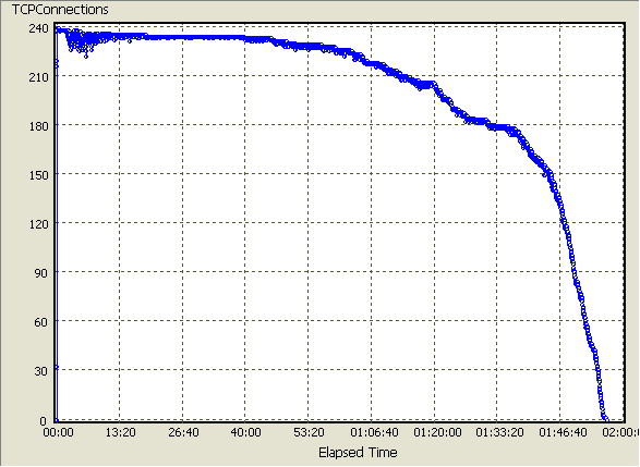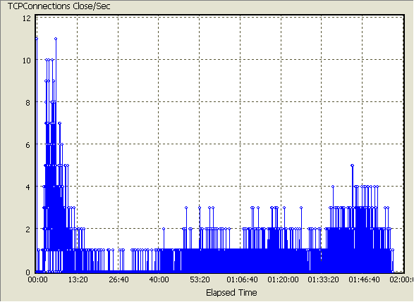 During simulation process number of Tcp connections get open and closed frequently and stay open for a period of time. These three graphs represent number of TCPConnections Open/Sec, number of TCPConnections Close/Sec, and TCPConnections which represents number of TCP Connections in open state at any time.