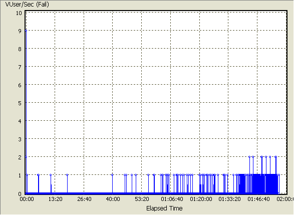 This graph represents number of virtual user successfully completes its process per second and number of virtual user fail per second The graph below shows the VUser passed per second and VUser fail per second.