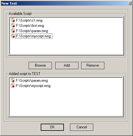 Test. Once the necessary scripts are added to the test click ok and save the the test. To remove the script from the test just select the script from the Test and click