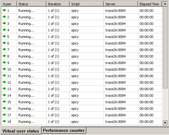 Simulator can able to generate up to several thousand virtual users but the exact figure is depend upon complexity of the script, hardware, used. In real scenario different users access different pages on the same website, to emulate this scenario first different script has to recorded with different activities, and then you can add as many as scripts to a test. These scripts in the test can be made to simulate concurrently or sequentially. In sequential method each script is simulated in one at a time way, once a simulation of one script is over, automatically another script will be started. In concurrent method all the virtual users of all the script is released at the same time.
