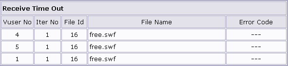 Receive timeout error, and HTTP error information that occurs during simulation process. It provides following information's vuser no, iteration no, file id, file name and