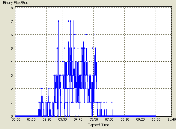 Binary Files/Sec graph shows the number of binary files (images, media files, etc) received from the web server.
