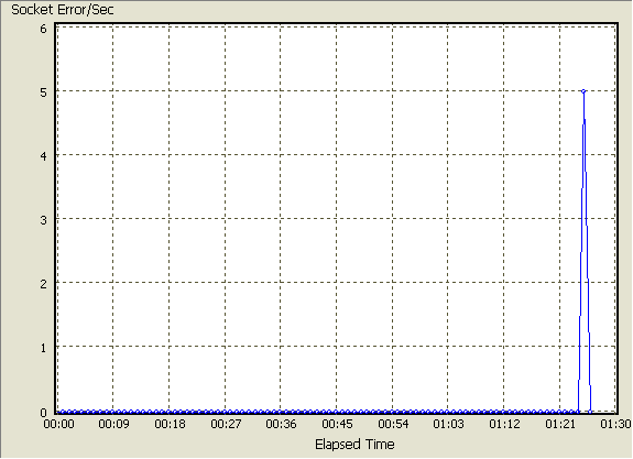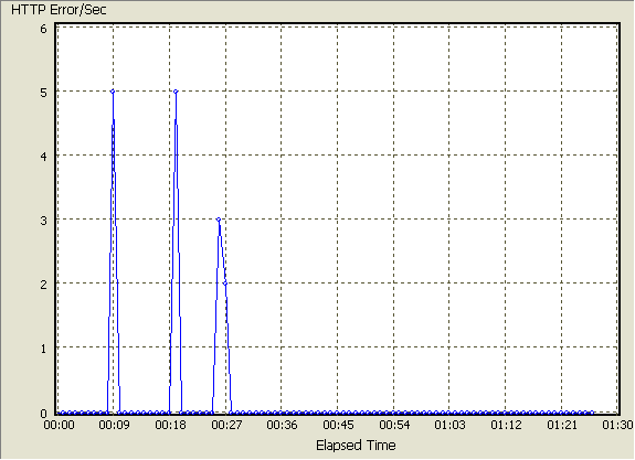 Different type of errors occurs during the simulation process like socket errors, receive time outs, HTTP errors. The Error/Sec graph represents any error occurs per second. Socket Error/Sec graph shows only the socket error occurs per second, Receive timeout Error/Sec graphs shows number of timeout occurs per second, HTTP Error/Sec graph shows the number of HTTP error occurs per second.