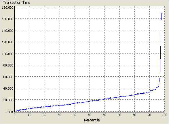 Percentile graph are generated by arranging all the vuser in ascending order according to transaction time of vuser, and taking maximum value from each percentage of vuser.