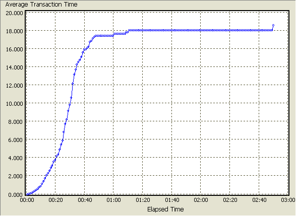 This graph shows average transaction time (time taken by each request and response) during each second of the simulation process.