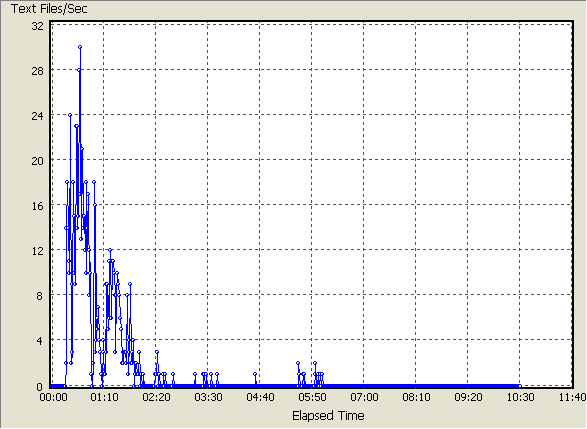 Text Files/Sec graph shows the number of text files (htm, asp, aspx, jsp, css, js, vbs, php, etc) received from the web server.