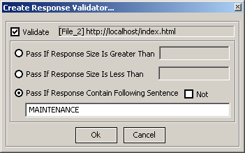 Response from the server can be validated using Response Validator functionality. In some application internal server error messages are shown in custom format in that case instead of 500 Internal Server Error response code, 200 OK will be returned. So we can check the response content from the server and validate the data.