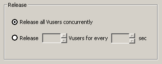 Release all vusers concurrently is the default option where all the vuser goes from the ready state to running state almost at the same time, using second option we can schedule the vuser to release N vuser for ever N sec. Here release means moving from ready state to running state.